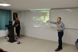 Akademik ve idari personele yönelik düzenlenen eğitimde; yangının sınıflandırılması, yangına müdahale esnasında kullanılan yöntemler, yangın esnasında nasıl davranılması gerektiği, yangın söndürme ekipmanlarının kullanımı, itfaiyenin sunduğu hizmetler konularında ilgili videolar eşliğinde bilgiler verildi.