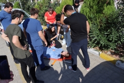 Eğitimin ardından önceden hazırlanan ve toplantısı yapılan senaryo çerçevesinde yangın tatbikatı gerçekleştirildi.